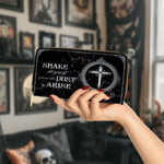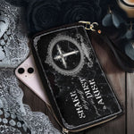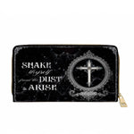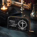 This wallet speaks to the spirit of rebirth. The gothic cross at its center radiates resilience, surrounded by vintage ornamental flourishes and the hauntingly beautiful message: “Shake thyself from the dust; arise.” Every glance reveals a new layer of meaning—hope forged through hardship, beauty wrapped in boldness.