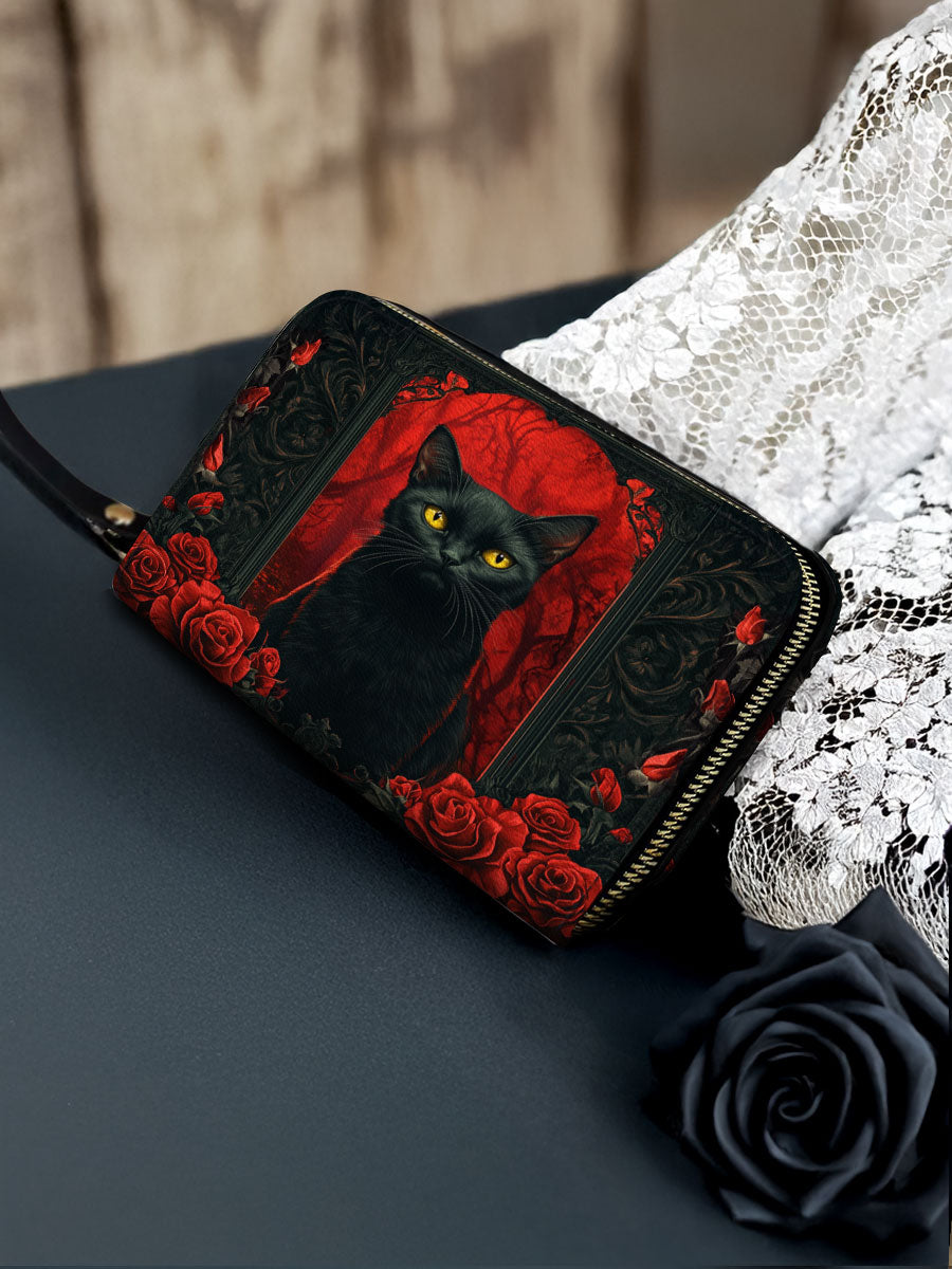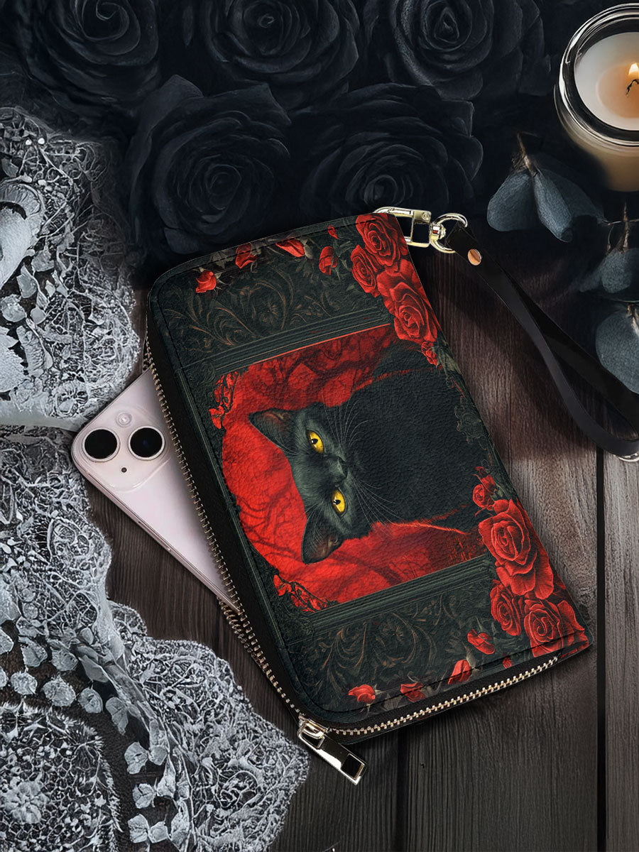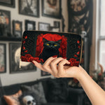 Dark, graceful, and captivating, this wallet channels an energy that’s both fierce and refined. The black cat, poised and unwavering, watches over crimson roses and velvet shadows. Each detail exudes mystery and strength, transforming a daily essential into a statement of identity.