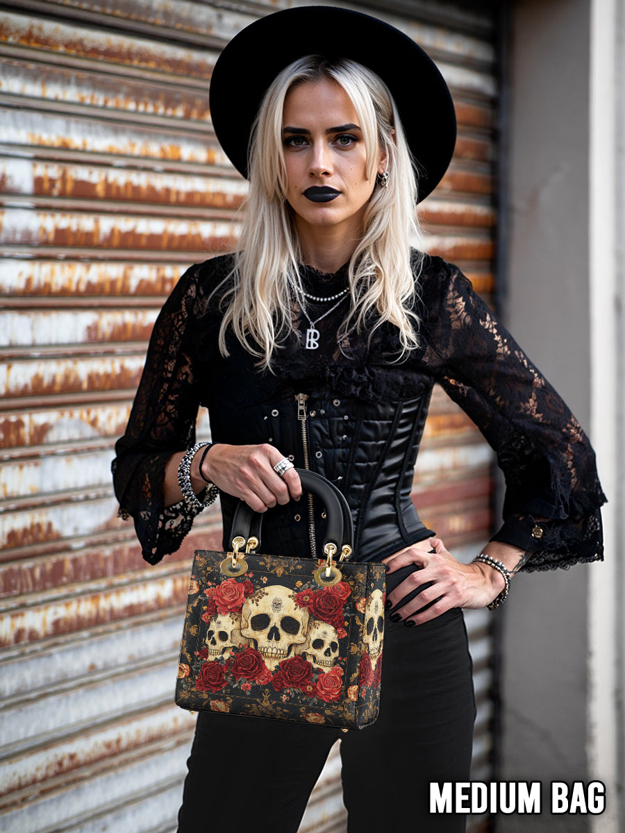 Crafted from premium leather and wrapped in rich gothic detailing, Floralis Mortem is for the soul who walks hand-in-hand with both shadow and bloom. Carry it as your reliquary of beauty and bone—because even death deserves to be adored.