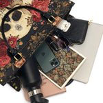 Love this bag! The skull and rose design is so striking and I always get compliments. Feels sturdy and matches my outfits perfectly.