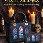 Crafted from luxurious leather and wrapped in spectral beauty, Cathedral of Midnight is for the one who finds peace in stillness, strength in the unknown, and grace within the gothic. Carry it as a window to your soul—a sanctuary for the strange, the sacred, and the beautifully dark.