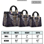 The deep purple and black hues evoke the mystique of moonlit graveyards and haunted chapels, where lost souls roam in silent reverence. Every stitch in this bag tells a tale of power, devotion, and the thin line between light and shadow.