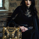 Each detail of this bag calls upon the spirits of the night, from the grinning skulls lurking in the corners to the gothic embellishments that feel almost… alive. Whether you’re wandering moonlit streets or stepping into the unknown, this bag is your talisman of darkness. Wear it if you dare—some doors, once opened, can never be closed…