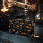 Designed for the curious, the bold, and the ones who always find a little magic in mischief, the Mooncats Mischief wallet brings playful energy to the everyday. Adorned with a cosmic parade of black cats, glowing pumpkins, and star-swept webs, it’s a celebration of Halloween whimsy with a celestial twist.
