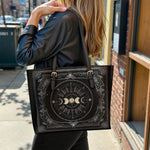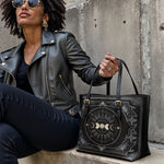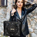 Bold, daring, and unapologetically you. The Gothistar Tote Bag combines premium leather with darkly enchanting skull and mystic motifs. Spacious and striking, it’s the perfect statement piece for your fearless style.