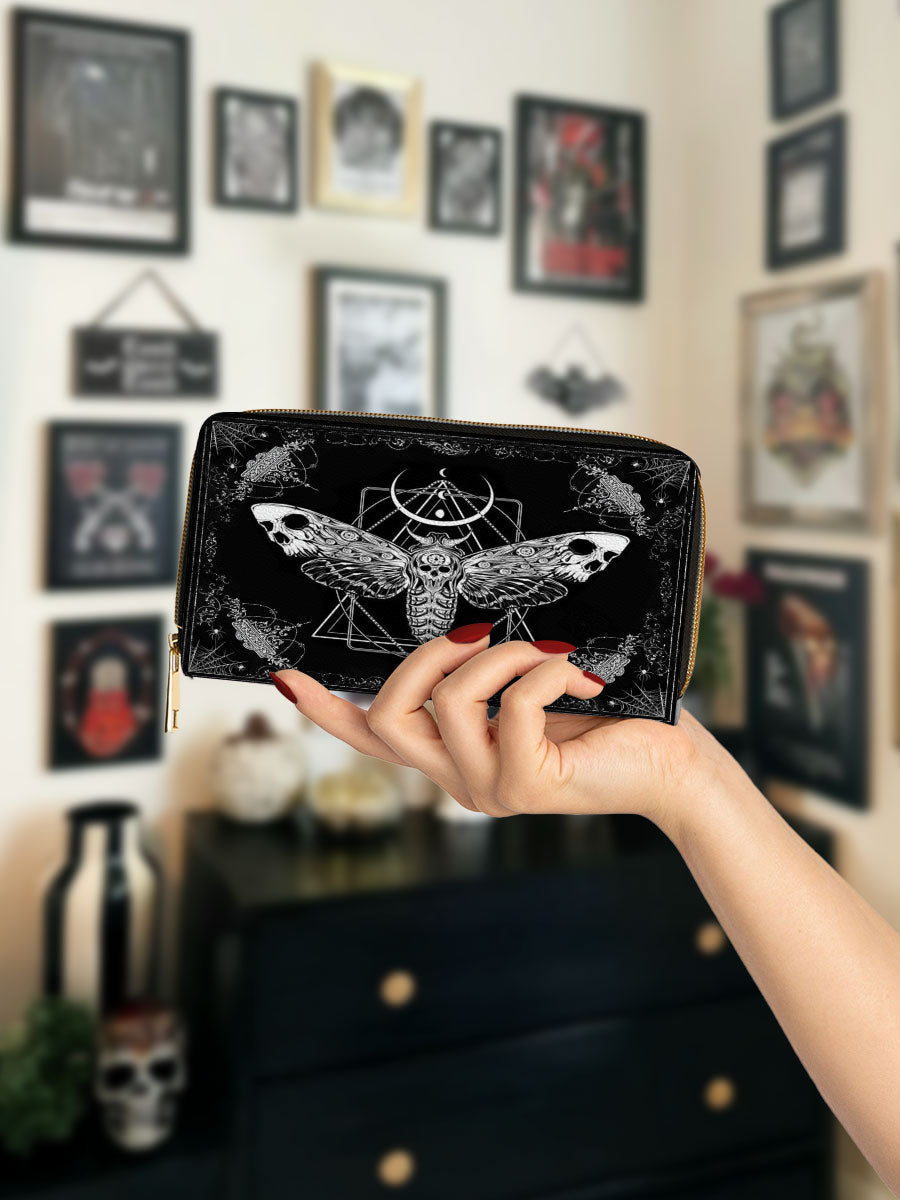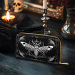 Delicately dark and irresistibly powerful, this wallet turns the everyday into ritual. The skull-winged moth and occult symbols aren't just decoration—they represent cycles, intuition, and the beauty in what lies beyond the veil. Compact yet commanding, it's the perfect union of style and spiritual resonance.