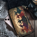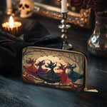 Designed for those who dance to the rhythm of moonlight and thrive in the thrill of the unknown, this Spellbound Waltz wallet channels the spirit of the untamed. Wrapped in an enchanting scene of witches mid-ritual beneath a twilight sky, it captures the essence of mischief, magic, and unapologetic power.