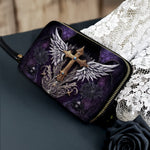The deep purple and black hues evoke the mystique of moonlit graveyards and haunted chapels, where lost souls roam in silent reverence. Every stitch in this bag tells a tale of power, devotion, and the thin line between light and shadow.