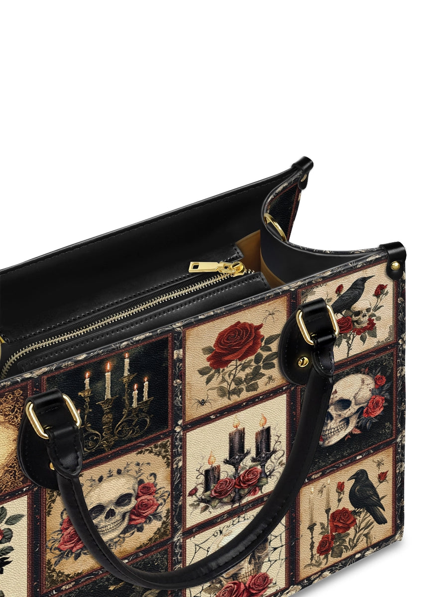 Love this bag! The skull and rose design is so striking and I always get compliments. Feels sturdy and matches my outfits perfectly.