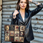 Bold, daring, and unapologetically you. The Gothistar Tote Bag combines premium leather with darkly enchanting skull and mystic motifs. Spacious and striking, it’s the perfect statement piece for your fearless style.