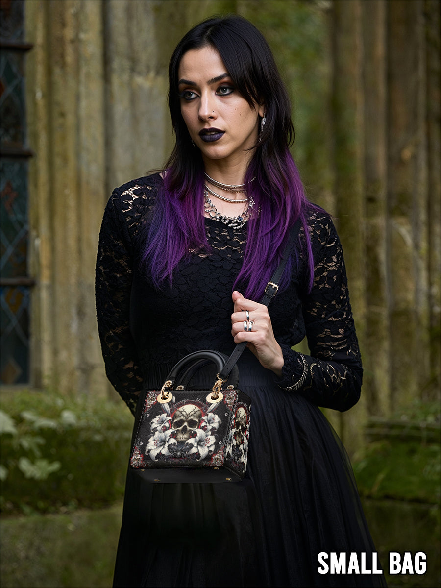 Gothistar Gothic Skullveil Roses Lady Leather Bag
