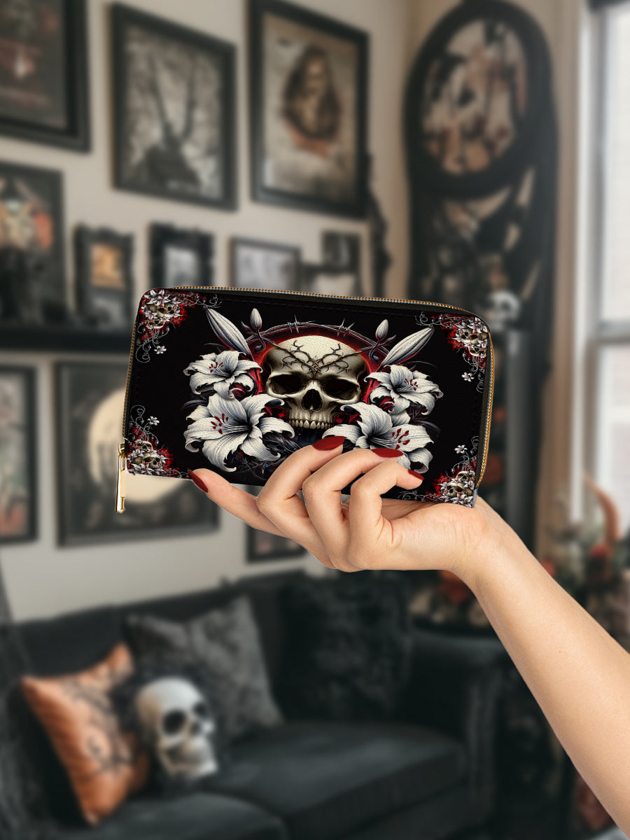 Gothistar Gothic Skullveil Roses Leather Wallet Purse