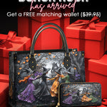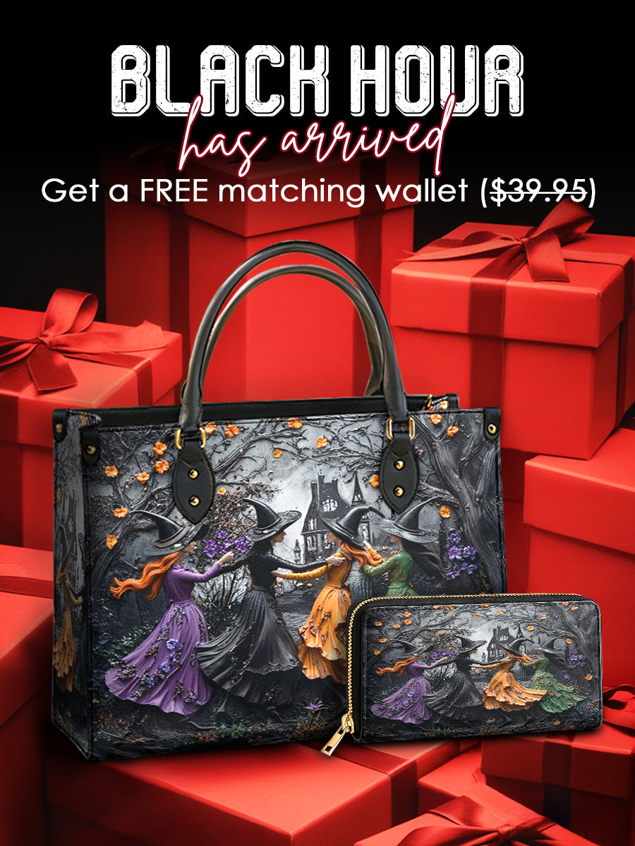 This bag features an enchanting Halloween scene sculpted in high-relief leather, capturing the eerie charm of witches dancing in the moonlight. Beneath gnarled, leafless trees and against the backdrop of a haunted mansion, four spellbinding witches twirl in flowing gowns of orange, green, purple, and black — each adorned with intricate floral textures and movement. The palette of dusky grays, twilight purples, and autumn oranges conjures a bewitching atmosphere, rich with mystery and old folklore. More than just a bag, it’s a story of sisterhood, magic, and the timeless allure of Halloween night — immortalized in leather.