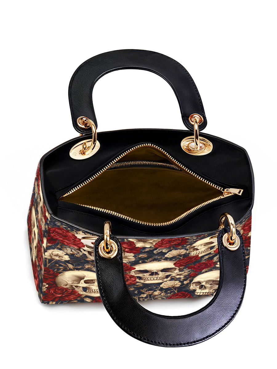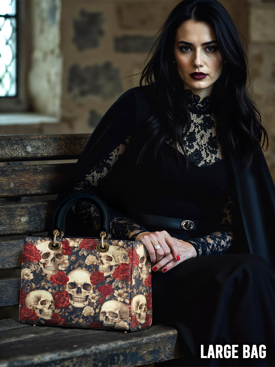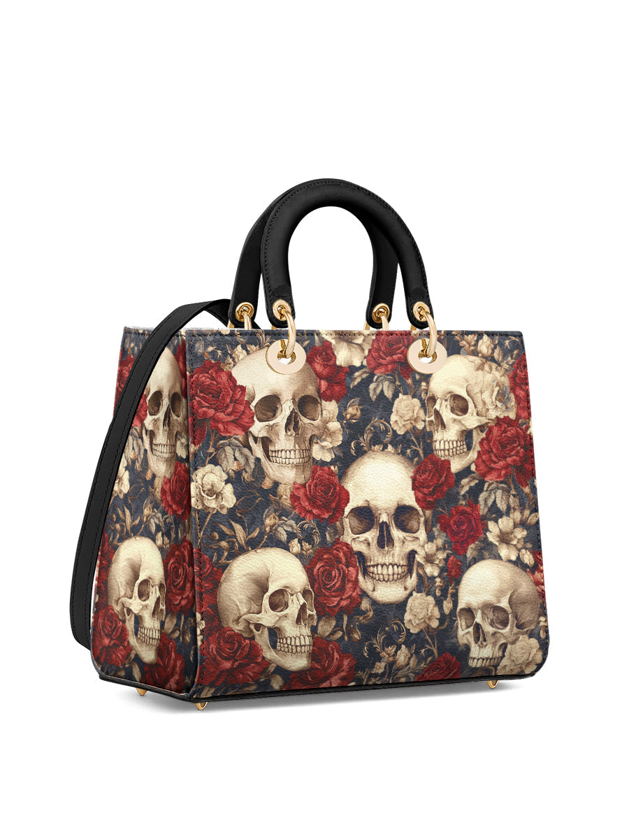 Love this bag! The skull and rose design is so striking and I always get compliments. Feels sturdy and matches my outfits perfectly.