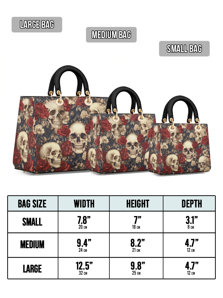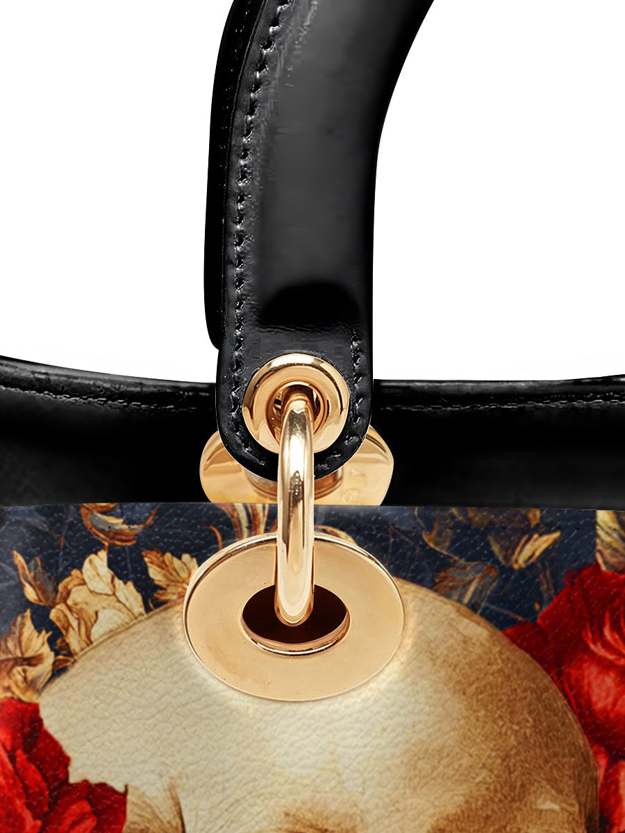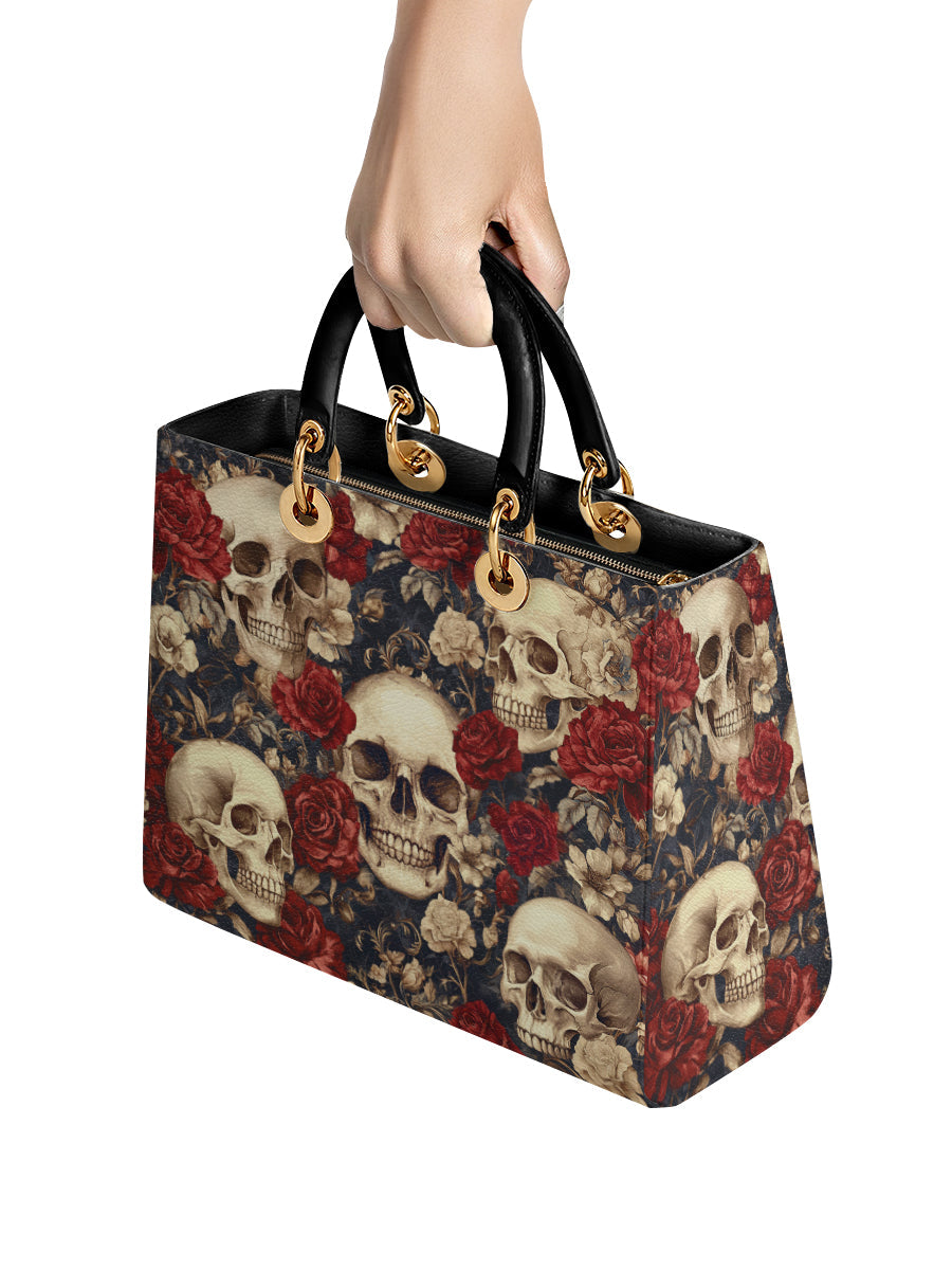 Love this bag! The skull and rose design is so striking and I always get compliments. Feels sturdy and matches my outfits perfectly.