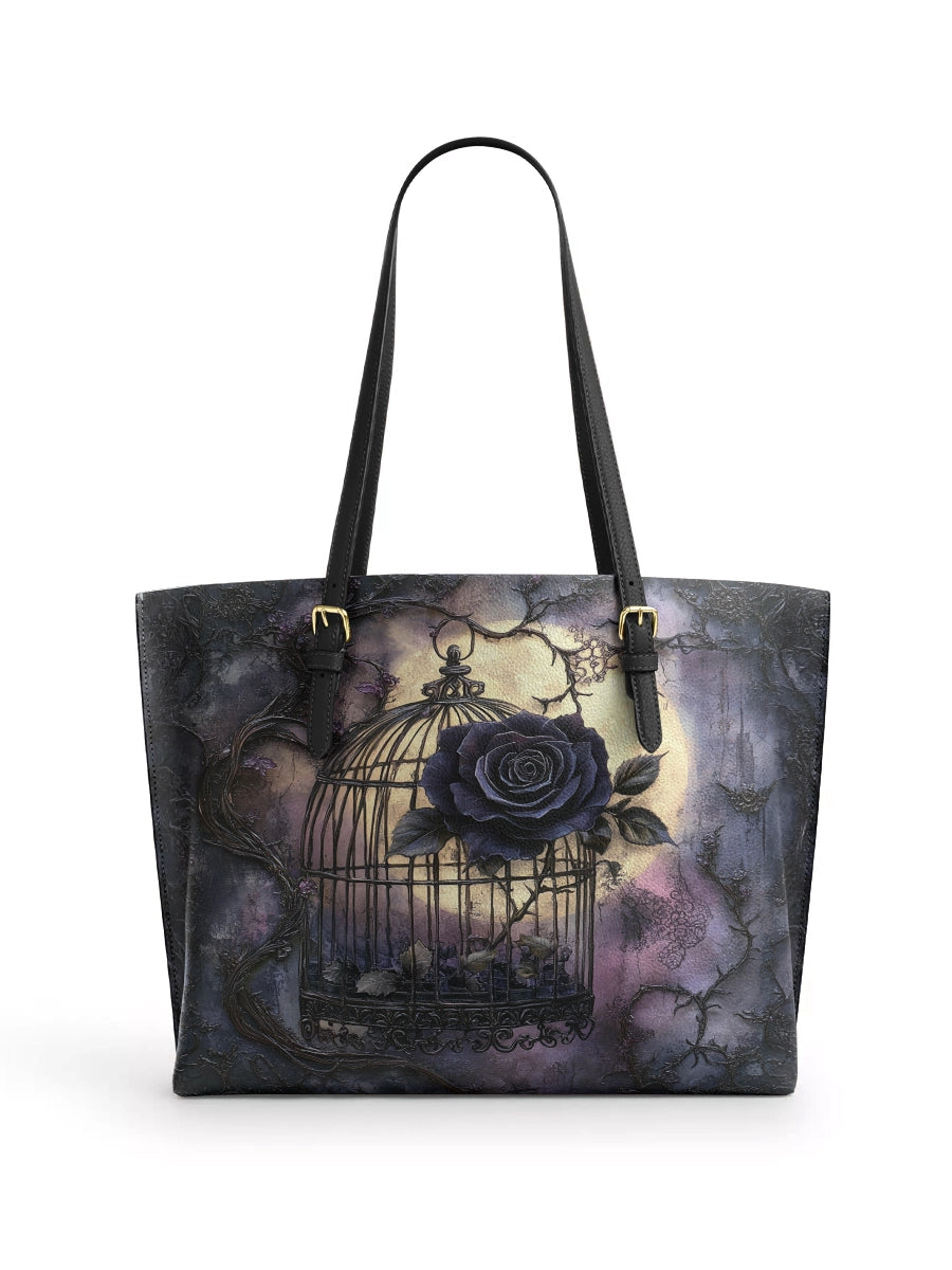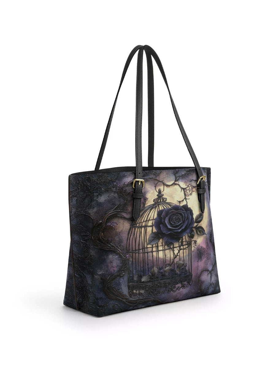 Gothistar Gothic Caged Bloom Leather Tote Bag