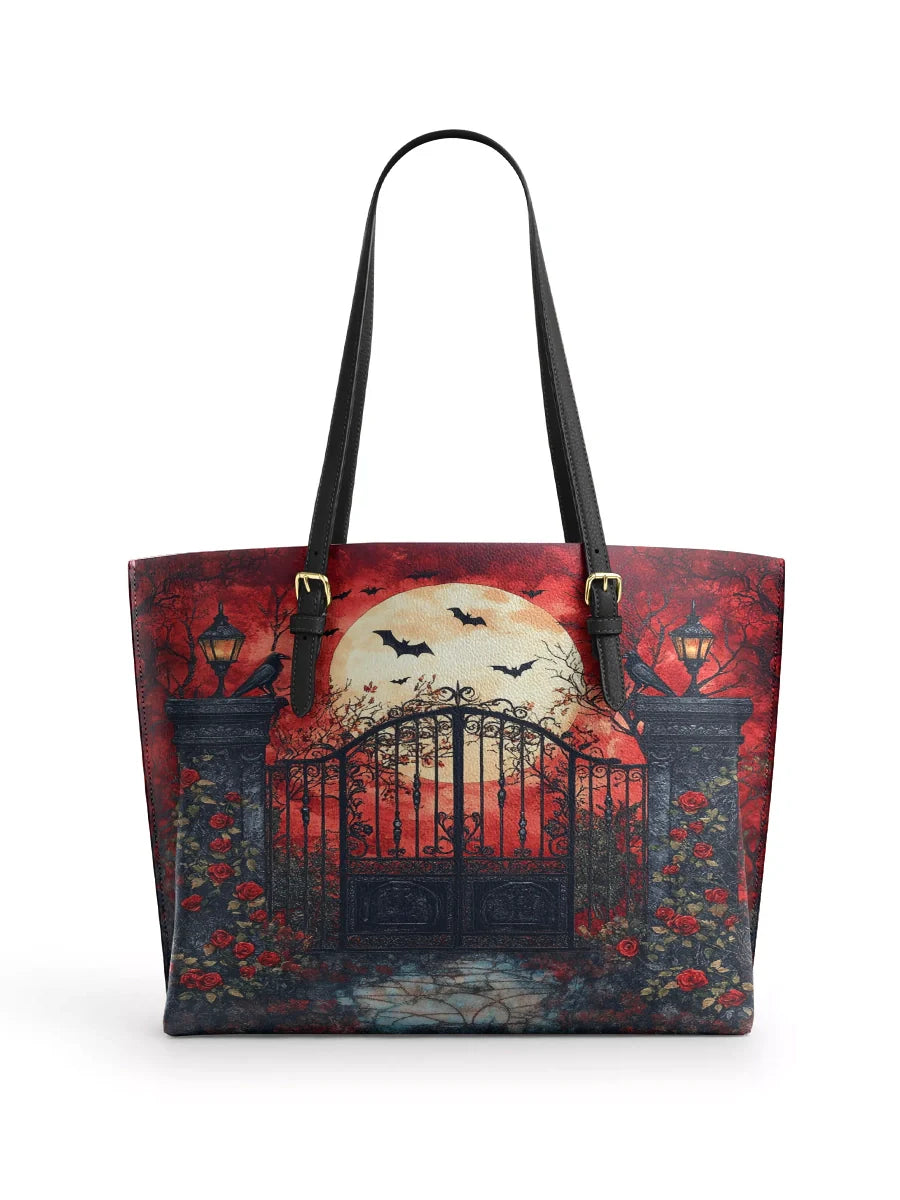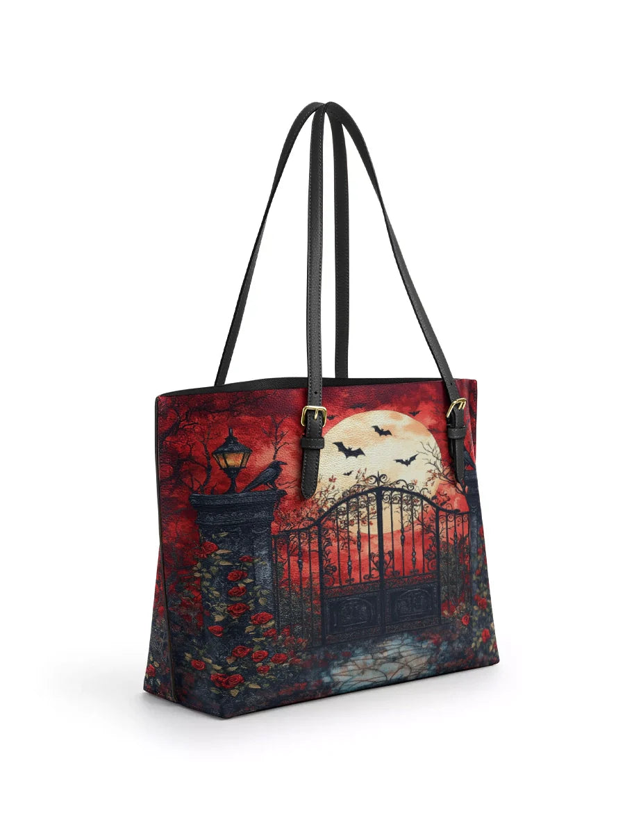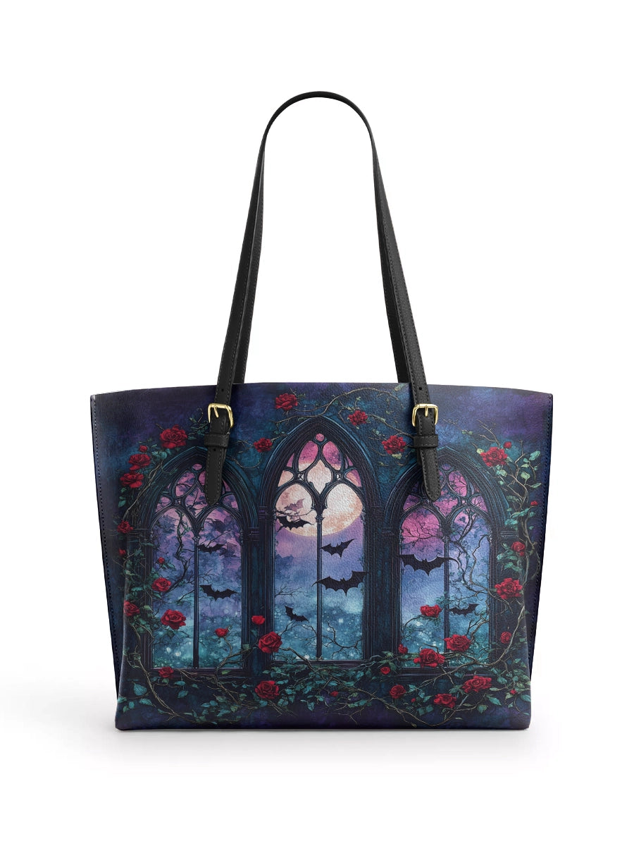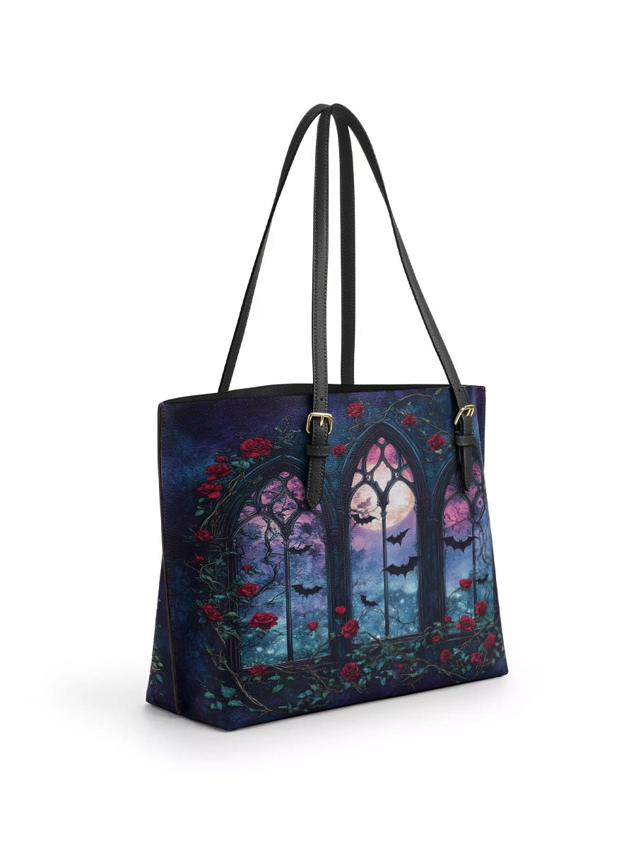 Gothistar Cathedral Of Midnight Leather Tote Bag