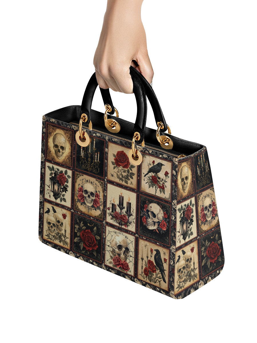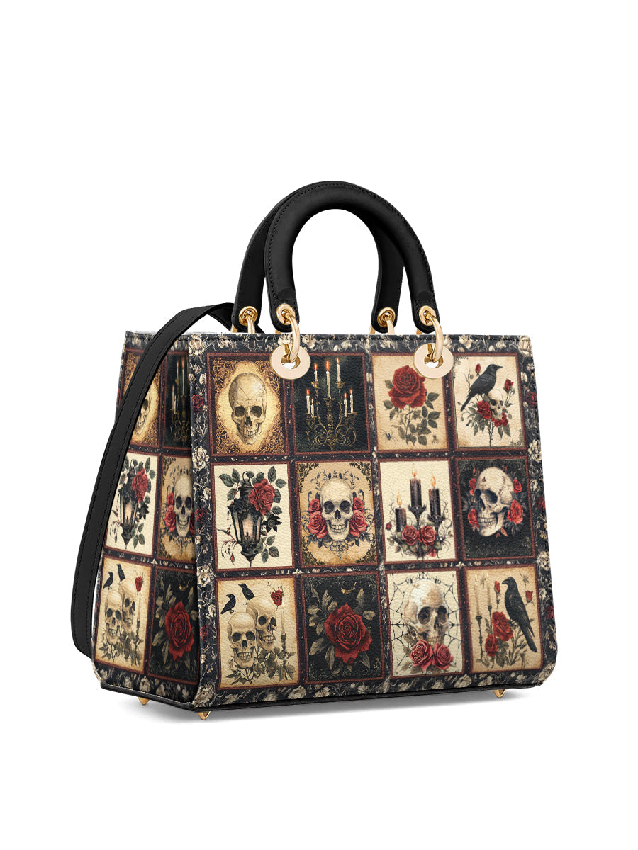 Love this bag! The skull and rose design is so striking and I always get compliments. Feels sturdy and matches my outfits perfectly.