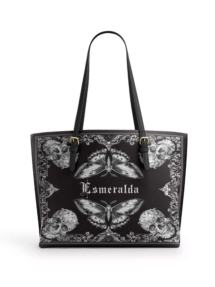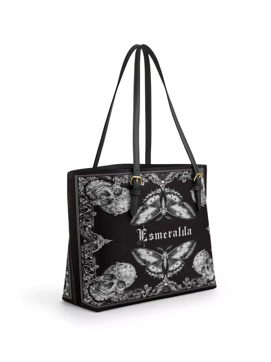 Gothistar Shadowlace Bloom Personalized Leather Tote Bag