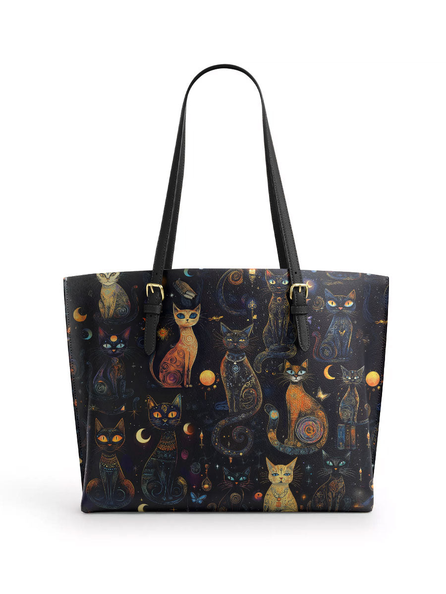 Gothistar Celestial Catspell Leather Tote Bag